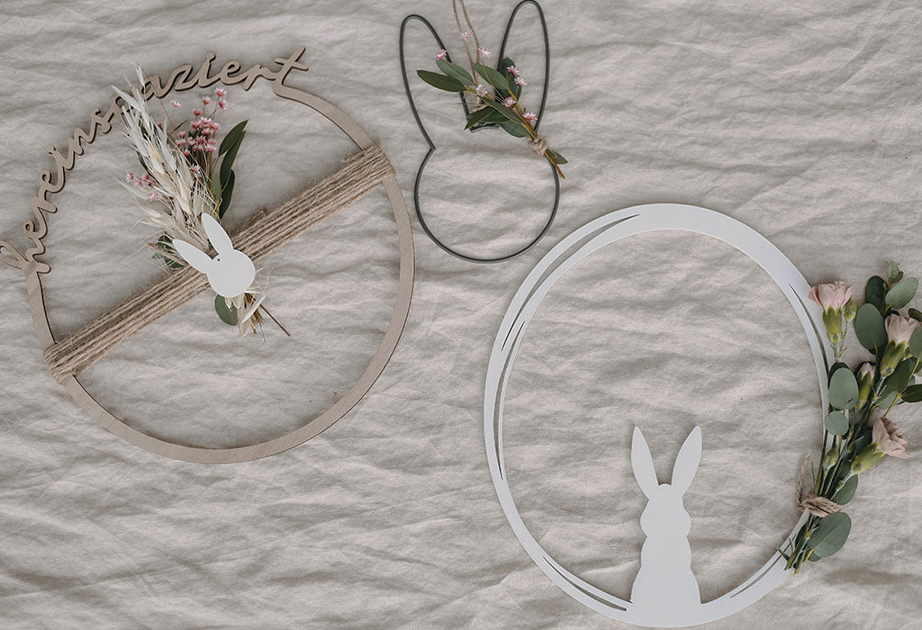 Youpi ! Aujourd'hui, c'est le début du printemps et donc le moment parfait pour embellir la maison avec une joyeuse décoration de Pâques. Dans cet article, nous souhaitons vous présenter trois idées créatives et simples de bricolage et vous montrer comment décorer votre maison avec de jolis couronnes de Pâques. Ces projets simples mais impressionnants sont non seulement une merveilleuse façon de libérer votre créativité, mais ils donnent aussi à votre maison une atmosphère accueillante pour les prochaines fêtes. Parfait pour accueillir vos visiteurs à Pâques.